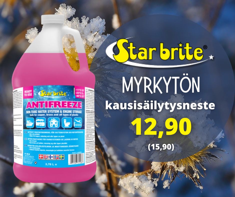 Antifreeze, myrkytön kausisäilytysneste suojaa juoma-/lämmitysvesijärjestelmät ja vesi WC-järjestelmät sekä kaikki vesijäähdytteiset moottorit myös alumiinilohkoiset sekä PVC-putket talvivarastoinnin ajan.
