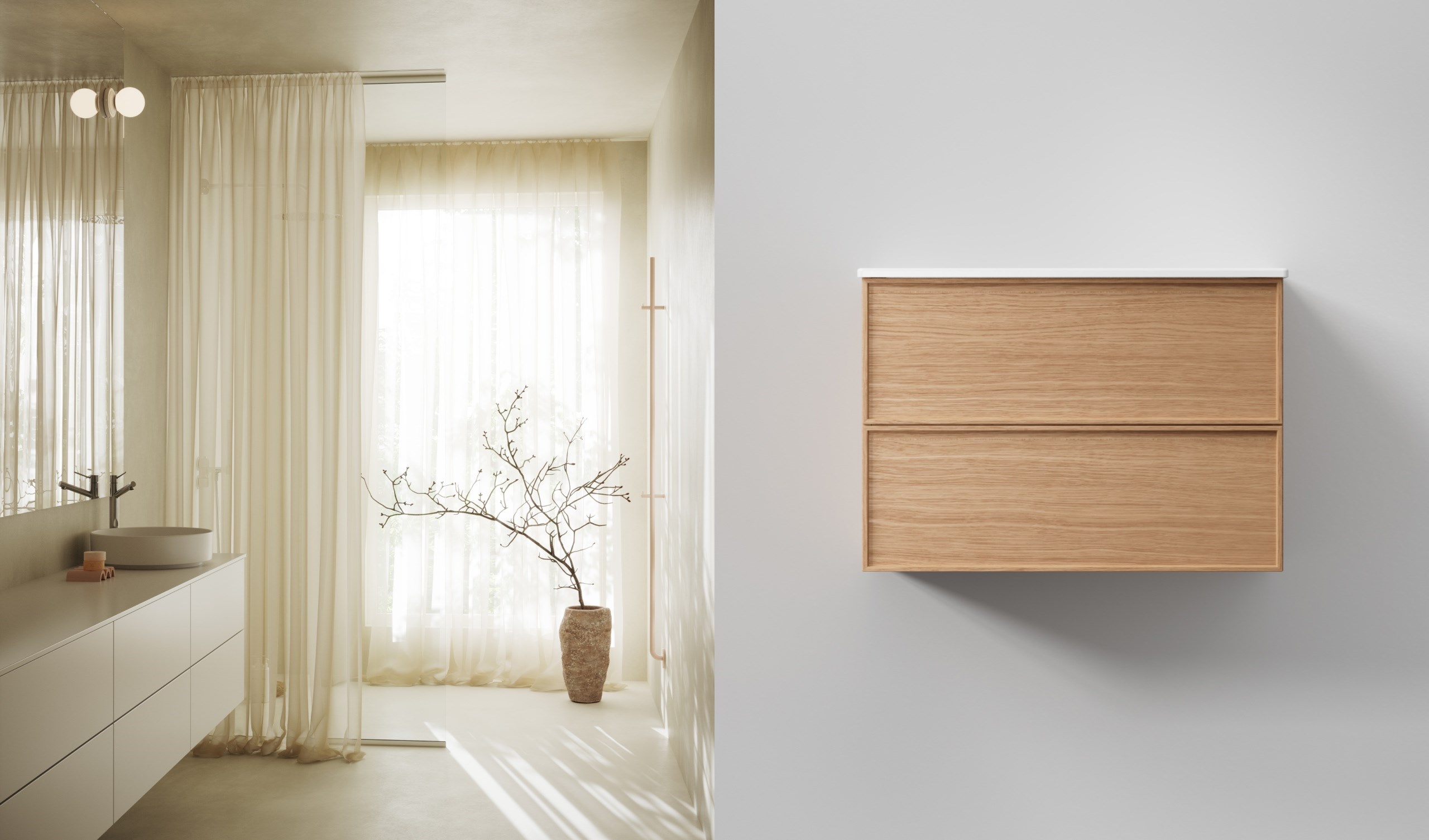 Helppokäyttöisen suunnitteluohjelman avulla avaat oven loputtomiin mahdollisuuksiin, ja saat itse luotua mieleisen kylpyhuonekalustekokonaisuutesi, juuri sellaiseksi kuin haluat! Miksi tyytyä vain valkoiseen, harmaaseen tai beigeen, kun voit valita kalusteet juuri siinä sävyssä, joka puhuttelee sinua? Valitse kalusteiden väri 2050:stä NCS-standardivärin joukosta, ja luo täysin omannäköisesi kokonaisuus.
