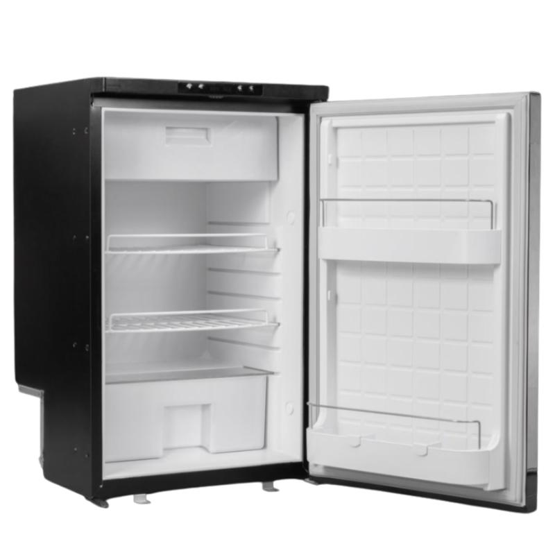 Kompressorikäyttöinen 12/24V 85 litran jääkaappipakastin LG:n kompressorilla sopii hyvin käytettäväksi sekä kotona että matkoilla. Kestää hyvin tärinää ja kallistuksia, joten toimii hyvin kovemmassakin menossa. Erittäin tehokas, jäähdyttää jopa -18 °C:een vain hyvin pienellä virrankulutuksella ulkolämpötilasta riippumatta. Hiljainen käyntiääni (45db).