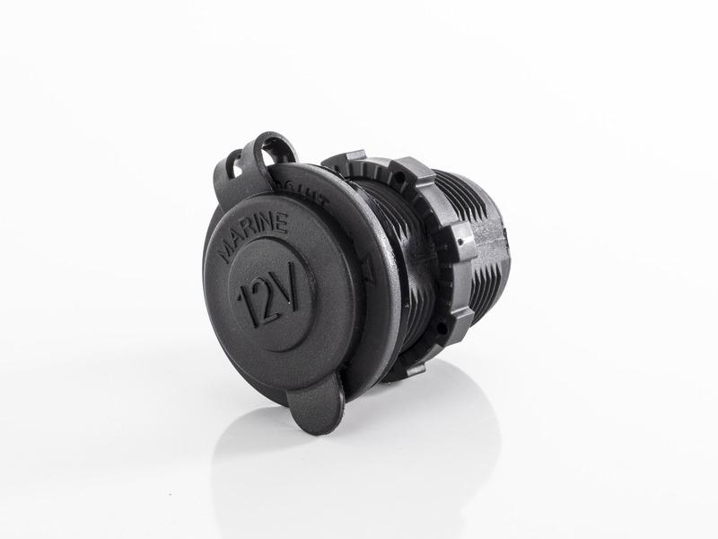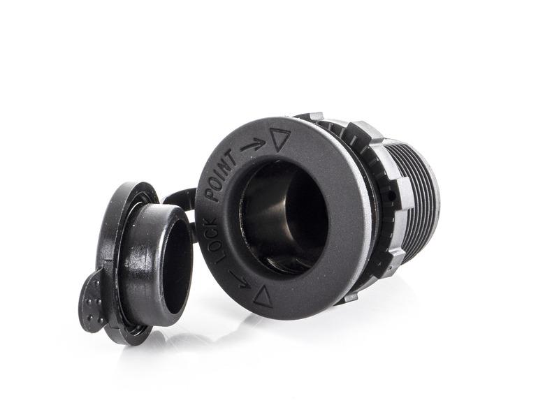 Yleispistorasia suojakorkilla 12 V / 24 V laitteiden lataamiseen ja käyttöön. Sopii myös lataustuloksi.