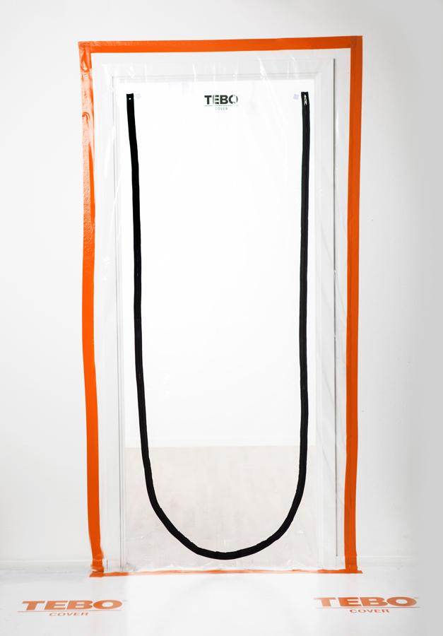Hengittävästä kuitukangasmateriaalista valmistettu pölysuoja oviaukkojen peittämiseen