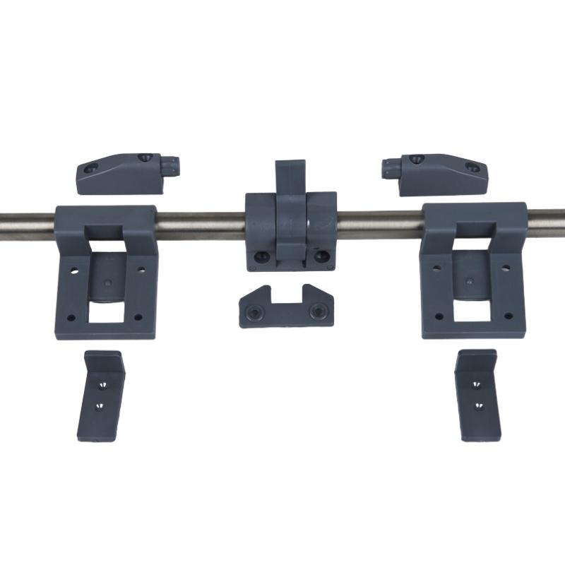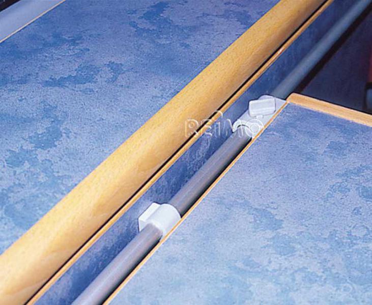 Pöydän liukukiskot pöydän irrottamiseen, kiinnittämiseen tai siirtämiseen. Lukittava siirtymänestolaite. Pöytäkisko voidaan lyhentää halutulla tavalla. Matta hopea anodisoitu.
