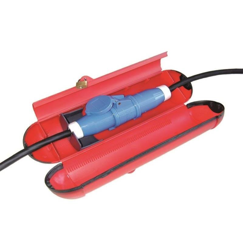 GoCamp suojarasia 230 V sähköjohdoille CEE. Sisältää riippulukon.