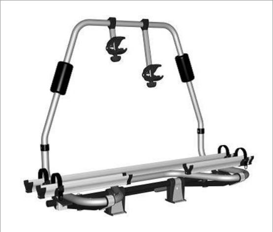 Lisävarusteena saatavalla kolmannella kourulla ja pyöränpitimellä täydennettynä telineeseen mahtuu 3 polkupyörää.