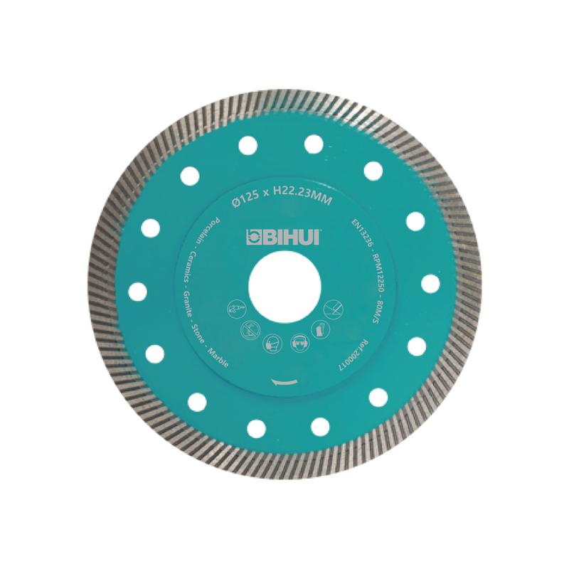 Segmentoitu timanttiterä luonnonkiven ja graniittikeramiikan märkä- ja kuivaleikkaukseen. Turbo-osien avulla voit leikata laatat lyhyessä ajassa ja saada hienoja leikkauksia.