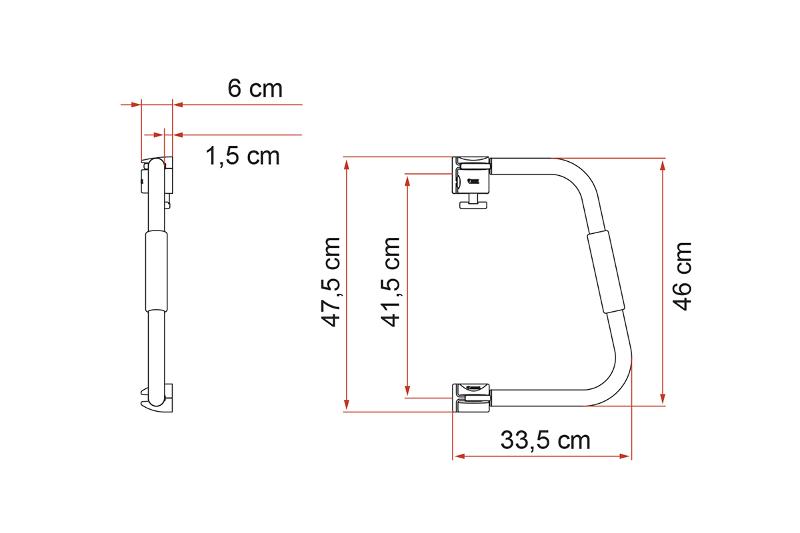 Turvakahva, joka on valmistettu kiinteästä maalatusta alumiinista, jonka halkaisija on 30 mm ja paksuus 2 mm. Korkeus: 46 cm.